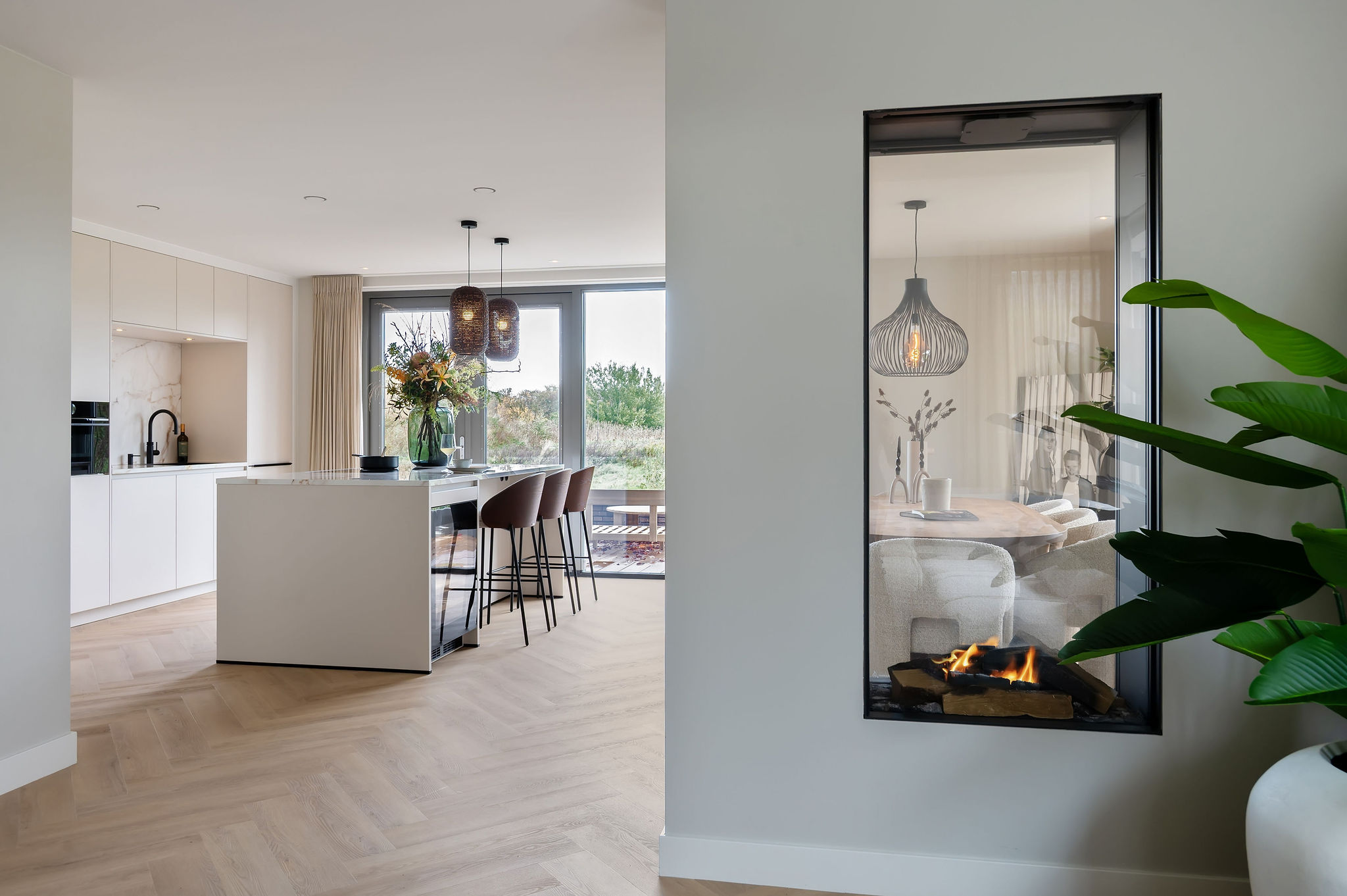 Alfred wist globaal wat hij wilde, maar stond open voor advies. “Ik wist wel hoe ik het ongeveer wilde, maar zij maakten een tekening en kwamen met goede ideeën. De ligging naar het buitenterras bijvoorbeeld, daar hebben ze echt goed over meegedacht.” Die samenwerking leidde tot een keuken die heel goed aansluit op de rest van de woning.Warm modern